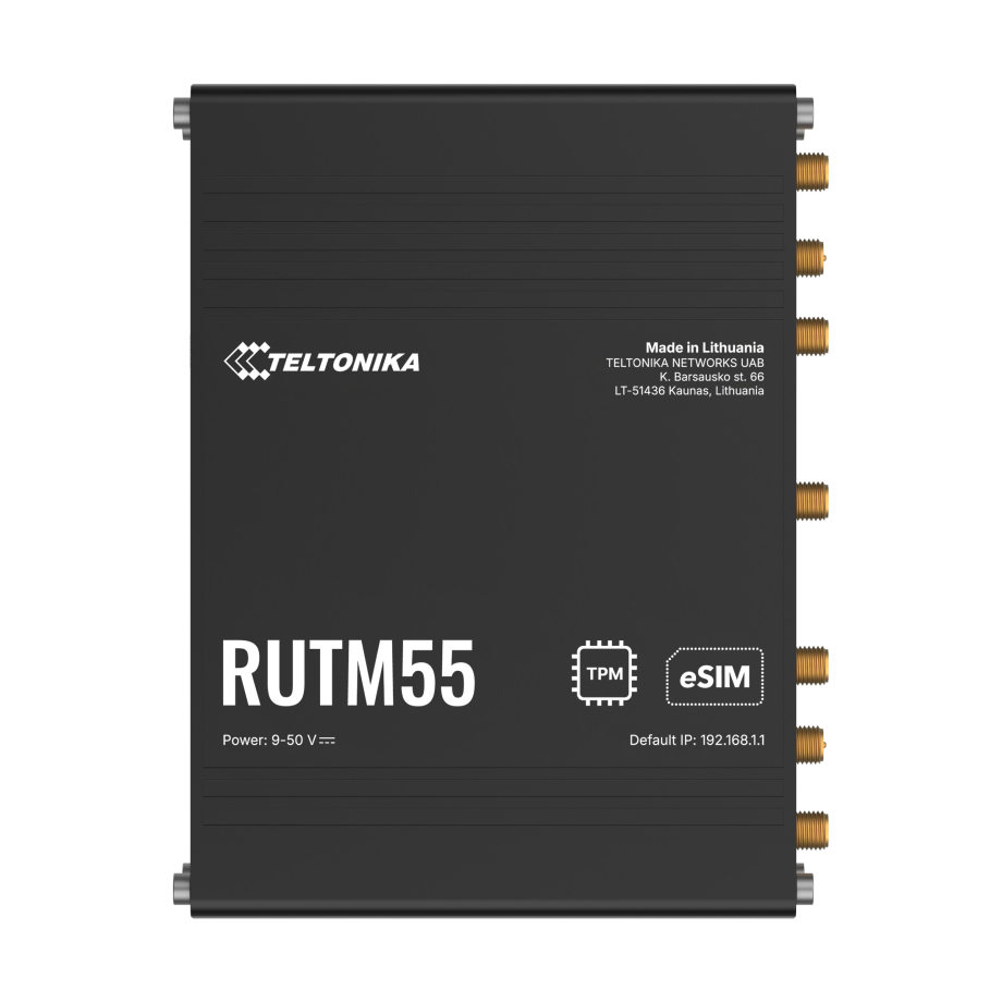 The Teltonika RUTM55 is a powerful industrial-grade 5G router designed to deliver ultra-fast and reliable connectivity for demanding applications. Equipped with a 5G Sub-6 GHz modem supporting both SA and NSA architectures, it enables download speeds of up to 3.4 Gbps and uplink speeds up to 900 Mbps. It also supports LTE Cat 19 and 3G fallback, ensuring uninterrupted connectivity across different network environments. For enhanced redundancy, the router features Dual SIM slots combined with an integrated eSIM. This allows automatic switching between operators based on signal strength, data limits, roaming conditions, or connection failures. The eSIM supports up to 7 profiles, enabling centralized remote management without requiring physical SIM replacement.