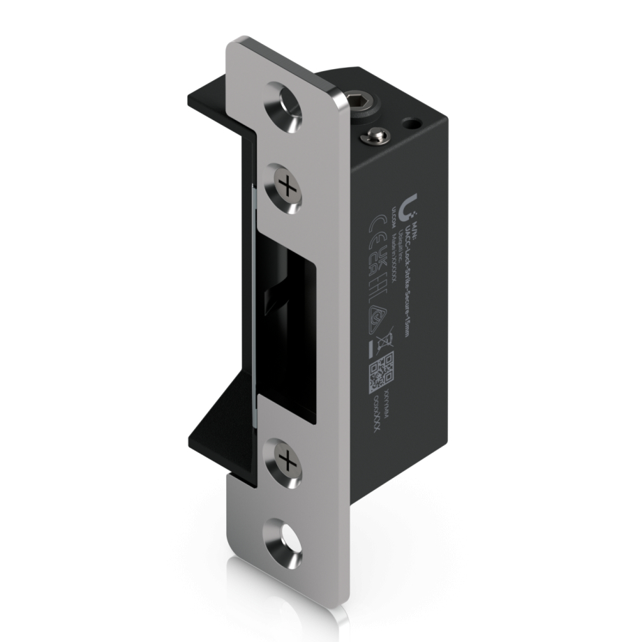 The Ubiquiti Fail-Secure Strike Lock 15mm (UACC-Lock-Strike-Secure-15mm) is engineered to deliver reliable security for single doors made of wood or metal. Designed as a fail-secure device, the lock maintains a locked state in the event of power interruptions, ensuring consistent access control and safety. The lock body is constructed from durable zinc alloy, providing resistance against wear and physical tampering. The front plate and latches are crafted from high-quality stainless steel, combining corrosion resistance with mechanical strength. This combination of materials ensures long-term durability in commercial and residential installations. Installation is performed with a door frame recess mount, allowing a flush and tamper-resistant fit that preserves the aesthetics of the door while ensuring secure locking. The lock integrates seamlessly with a UniFi Access Hub, making it an ideal component for centralized access control systems.
