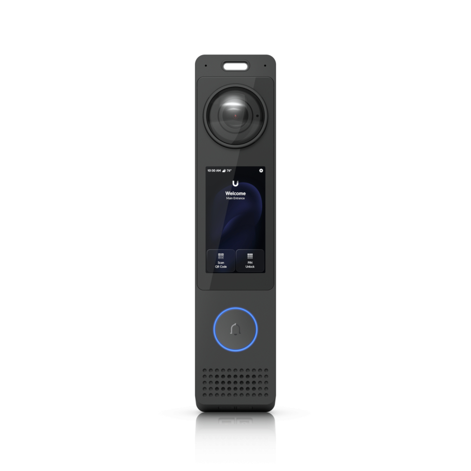 Two way audio functionality enables real time communication between visitors and occupants, supported by an integrated intercom and doorbell system. This allows users to verify and manage access remotely, improving both convenience and security. The device is powered via PoE+ and connects through a Gigabit Ethernet interface, ensuring stable network communication and simplified installation. To unlock full access features such as NFC and face recognition, an Access Hub and UniFi applications are required, ensuring seamless integration within the UniFi ecosystem.