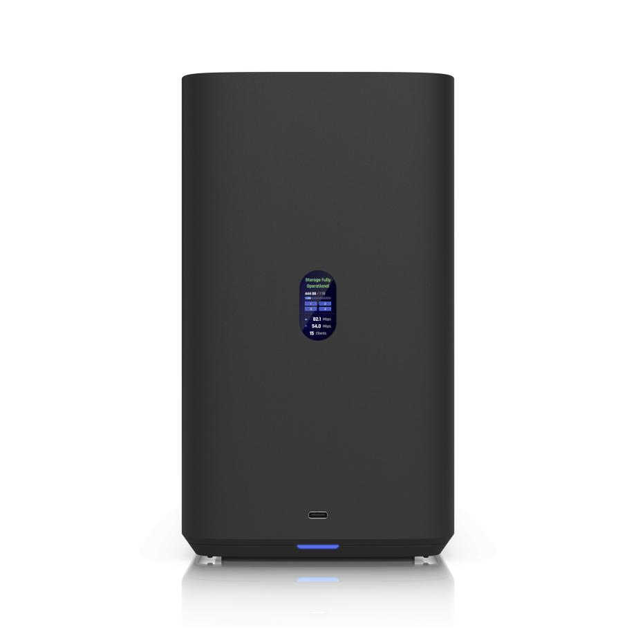 The Ubiquiti UNAS 4 is built on a reliable hardware platform designed for consistent performance and efficient operation. It is powered by a quad core ARM Cortex A55 processor running at 1.7 GHz, combined with 4 GB of system memory. This configuration enables smooth handling of multiple tasks, including file transfers, backups, and application services. The device operates using PoE+++ as its primary power method, with a 90W adapter included for easy deployment. With a maximum power consumption of 90W, it maintains an efficient balance between performance and energy usage. The compact enclosure, constructed from durable polycarbonate, ensures long term reliability while keeping the overall footprint minimal.