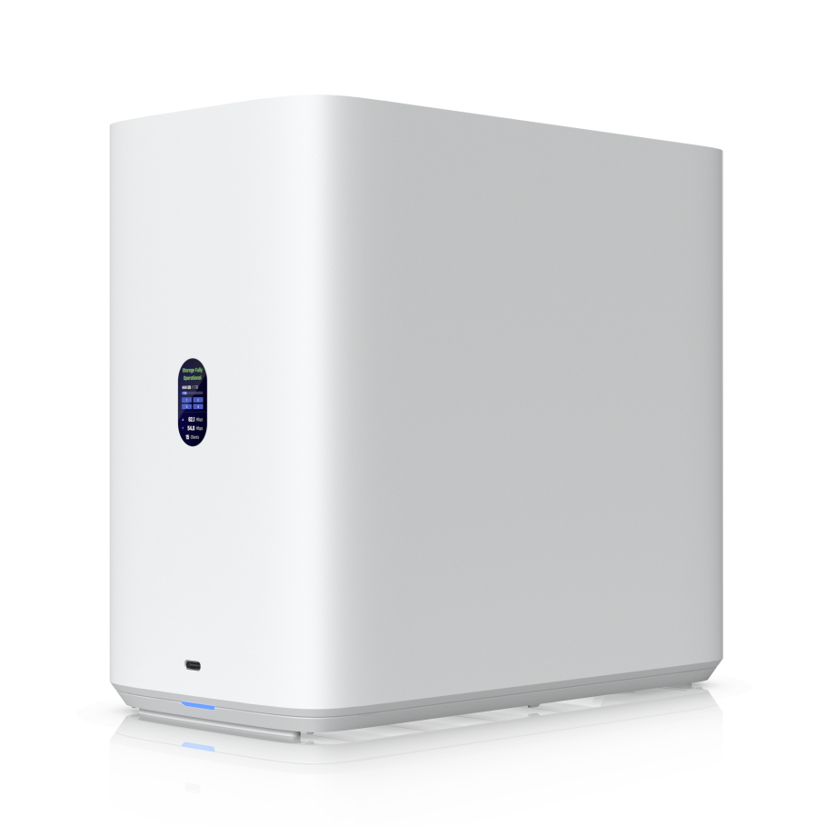 The Ubiquiti UNAS 4 is a compact and powerful network attached storage solution designed to deliver reliable data management for both professional and advanced home environments. Built in a desktop form factor, it combines high capacity storage options with efficient performance, making it suitable for centralized file storage, backups, and media management. The device features four drive bays compatible with both 2.5 inch and 3.5 inch hard drives, allowing users to configure storage based on their performance and capacity needs. In addition, two dedicated M.2 NVMe slots enable high speed SSD caching, significantly improving data access times and overall system responsiveness. This hybrid storage approach ensures a balance between large capacity and fast performance.