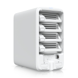 The Ubiquiti UNAS 4 is built on a reliable hardware platform designed for consistent performance and efficient operation. It is powered by a quad core ARM Cortex A55 processor running at 1.7 GHz, combined with 4 GB of system memory. This configuration enables smooth handling of multiple tasks, including file transfers, backups, and application services. The device operates using PoE+++ as its primary power method, with a 90W adapter included for easy deployment. With a maximum power consumption of 90W, it maintains an efficient balance between performance and energy usage. The compact enclosure, constructed from durable polycarbonate, ensures long term reliability while keeping the overall footprint minimal.